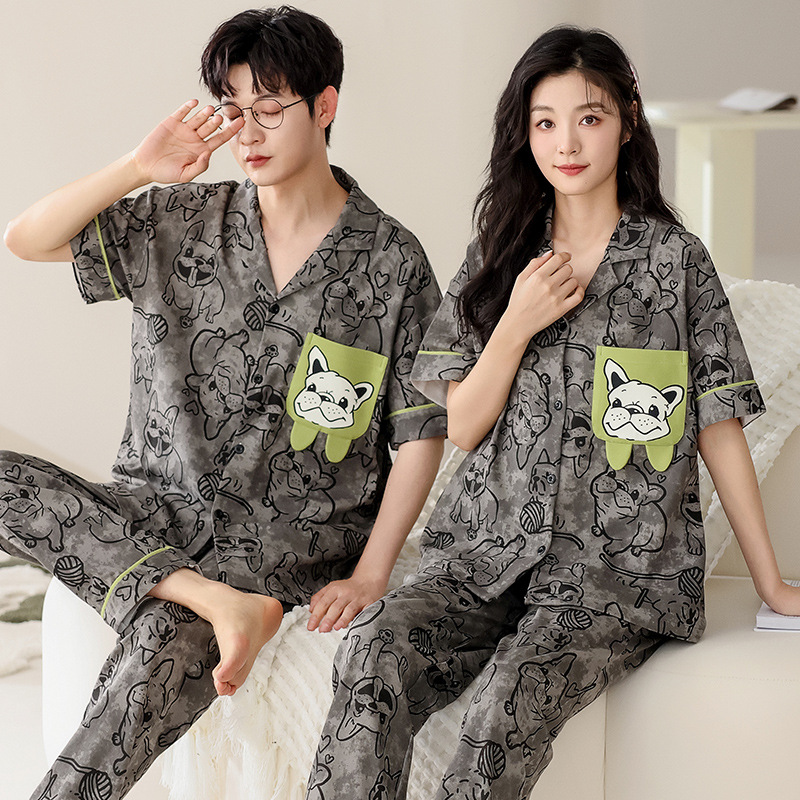 Summer short sleeved couple pajamas pure cotton women’s home clothing casual and wearable set